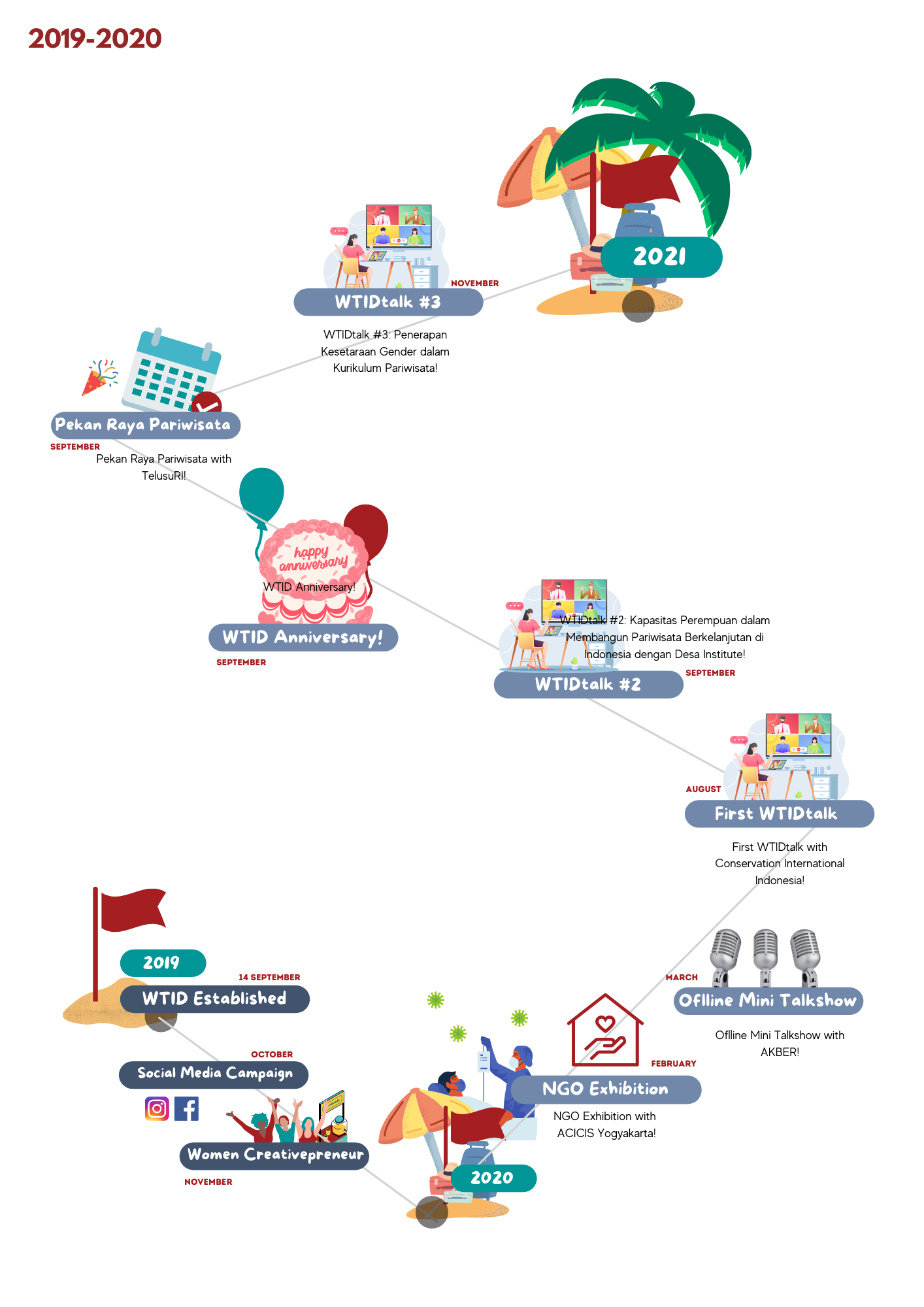 We decide to calculate our impact in 2 years as we have tremendous achievement in our second year after Women in Tourism Indonesia was established! We created Women in Tourism Indonesia as a community in 2019 and after one year in the industry, we are lucky to receive a massive warm welcome and excitement from our women and partners--they advised us to legalize our community as NGO. Thus we decided to register our NGO by the end of 2020 and we became an NGO in 2021!